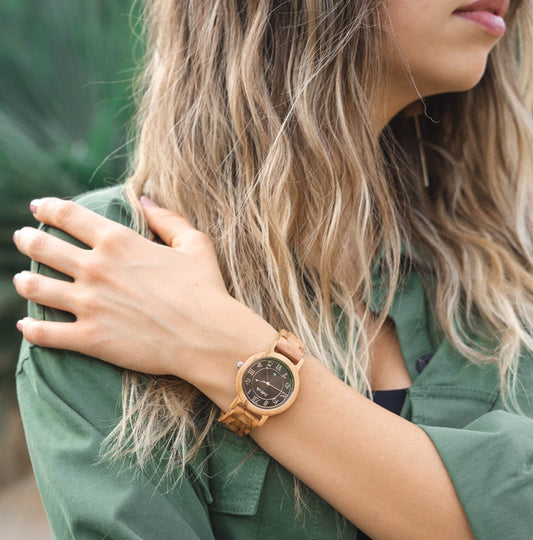 Entdecken Sie unsere exklusive Kollektion von handgefertigten Holzarmbanduhren für Männer und Frauen. Jedes Stück ist ein Unikat und wird mit viel Liebe zum Detail gefertigt. Unsere Uhren vereinen die natürliche Schönheit des Holzes mit der Präzision eines hochwertigen Uhrwerks. Unsere Holzarmbanduhren sind nicht nur ein stilvolles Accessoire, sondern auch umweltfreundlich. Das verwendete Holz stammt aus nachhaltiger Forstwirtschaft und wird sorgfältig ausgewählt, um die einzigartige Maserung und Farbe jedes einzelnen Stücks zur Geltung zu bringen. Jede Uhr wird von erfahrenen Handwerkern in Handarbeit gefertigt, um sicherzustellen, dass sie höchsten Qualitätsstandards entspricht.
