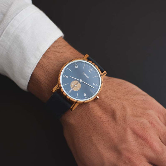 Holzarmbanduhr Amtsberg blau - Zebrano