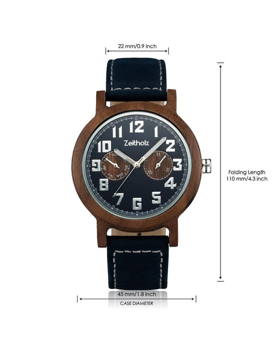 Holzarmbanduhr Klingenberg blau - Walnuss